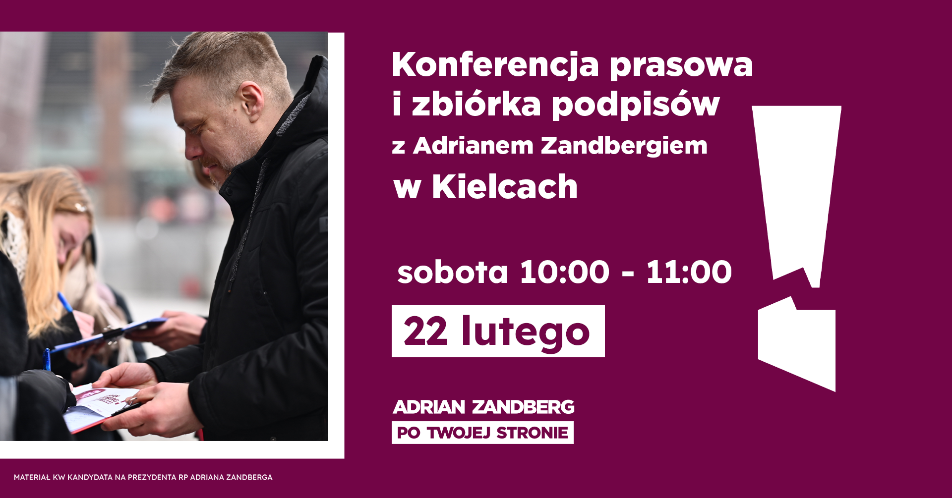 Zbiórka podpisów z Adrianem w Kielcach10:00 -11:00 Kielce, Pl Artystów22.02.2025, 10:00