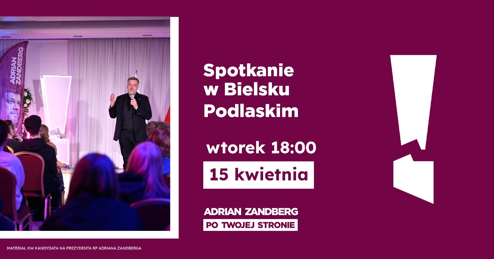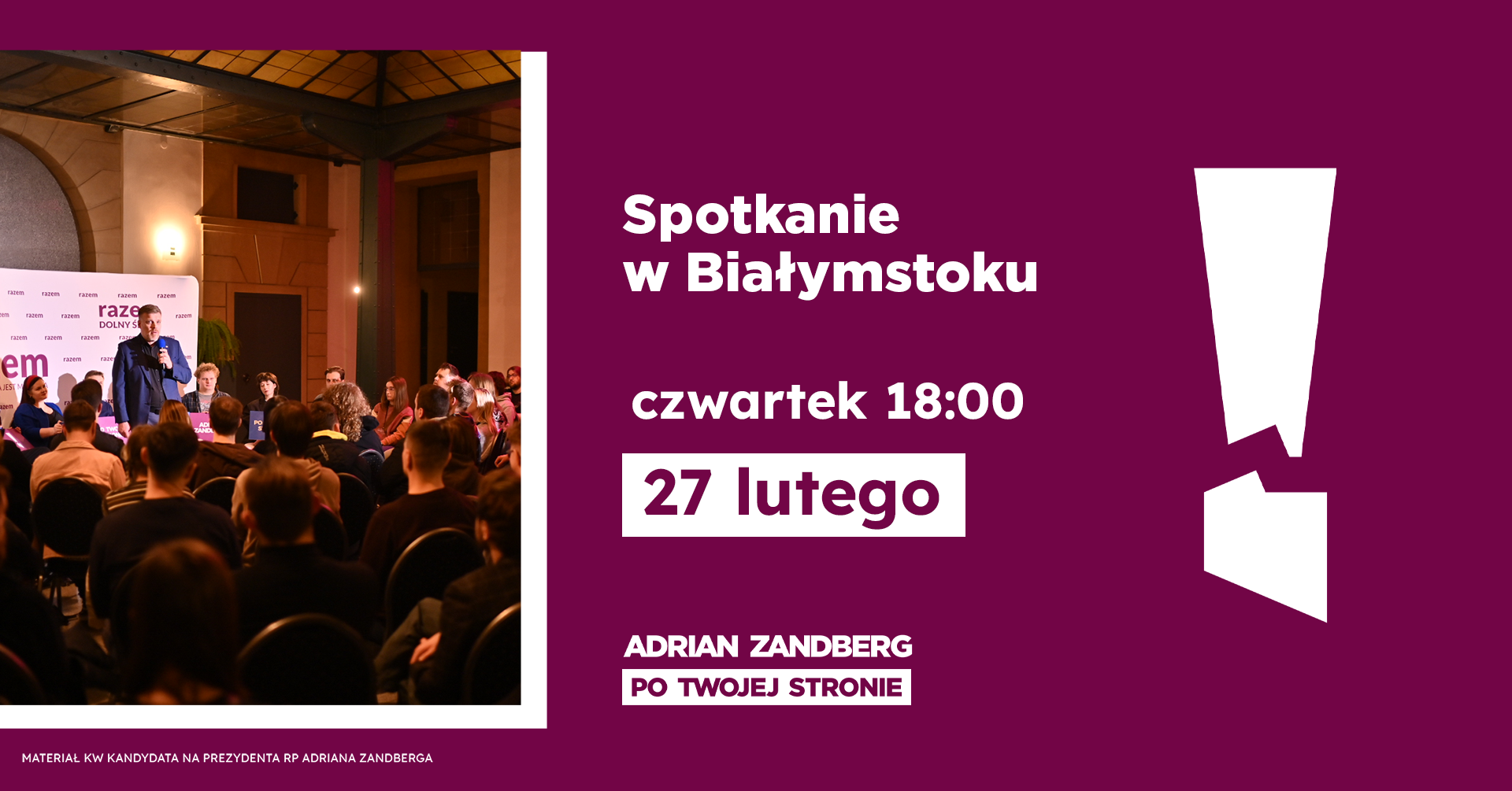 Adrian Zandberg w Białymstokusala konferencyjna Hotel Ibis, al. Józefa Piłsudskiego 25, Białystok27.02.2025, 18:00