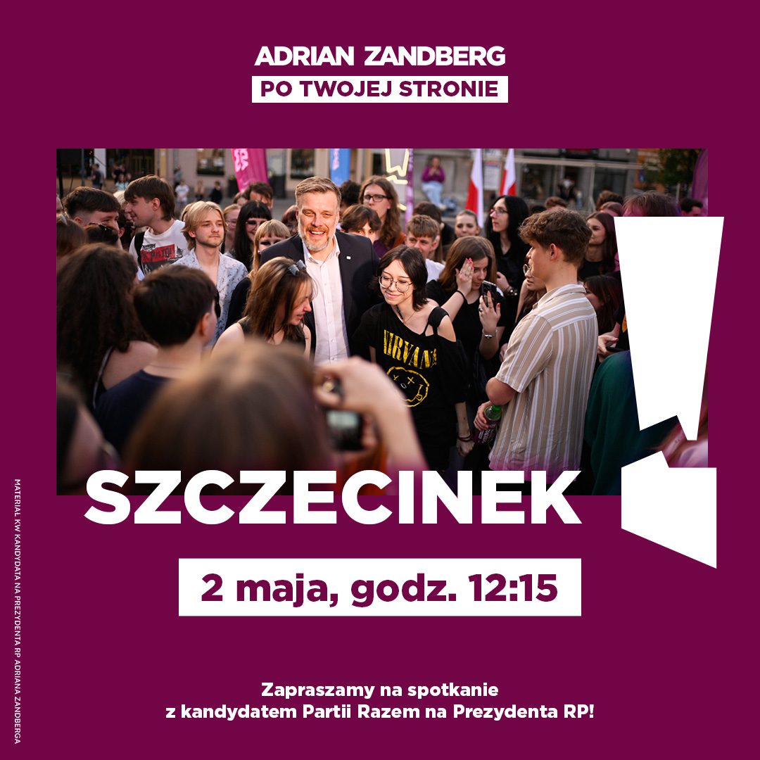 Adrian Zandberg w SzczecinieFranciszka Ksawerego Druckiego-Lubeckiego 6A, 71-643 Szczecin08.03.2025, 18:00