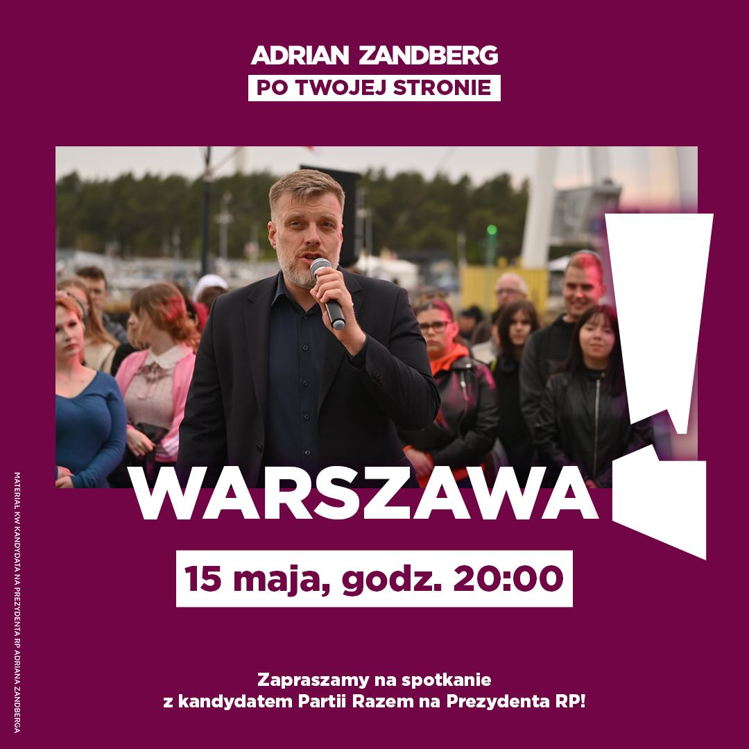 Zandberg w Płocku!Plac przed pomnikiem Broniewskiego, ul. Tadeusza Kościuszki25.04.2025, 19:00
