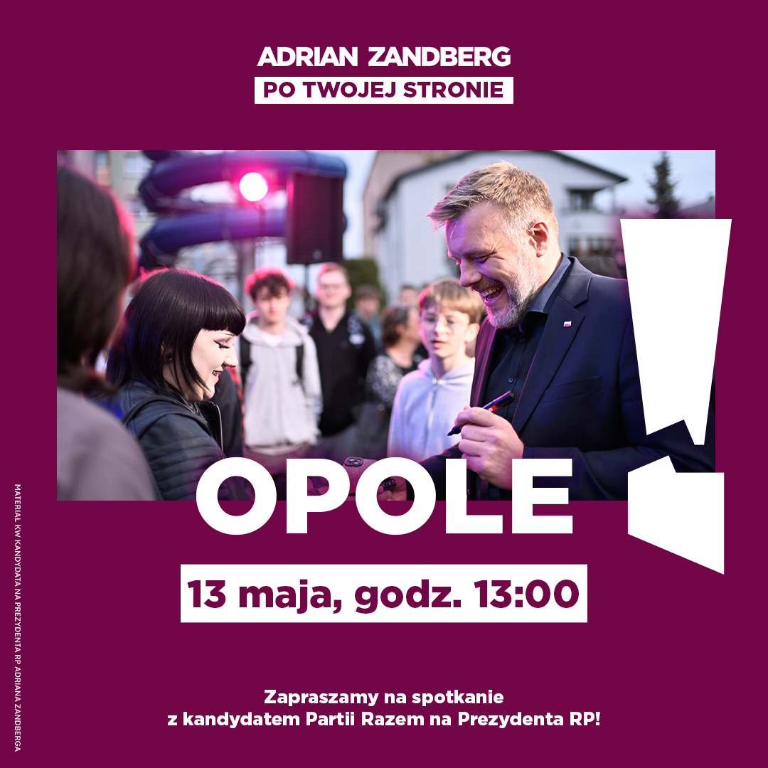 Zandberg w Opolu: Zamiast produkować leki, rząd Tuska rozdaje elektryczne zabawkiW ramach trasy kampanijnej kandydat na Prezydenta RP Adrian Zandberg odwiedził Opole. Podczas wspólnej konferencji z posłanką Marceliną Zawiszą, oraz Jerzym Przystajko Zandberg przekonywał do rozwoju produkcji leków w Polsce. Kandydat podkreślał, że rząd Donalda Tuska nie realizuje celów zakładanych pierwotnie w KPO.Czytaj więcej