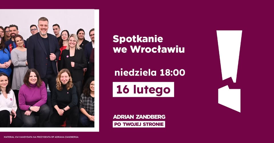 Adrian Zandberg we WrocławiuStara Giełda, Plac Solny 16, 50-062 Wrocław16.02.2025, 18:00