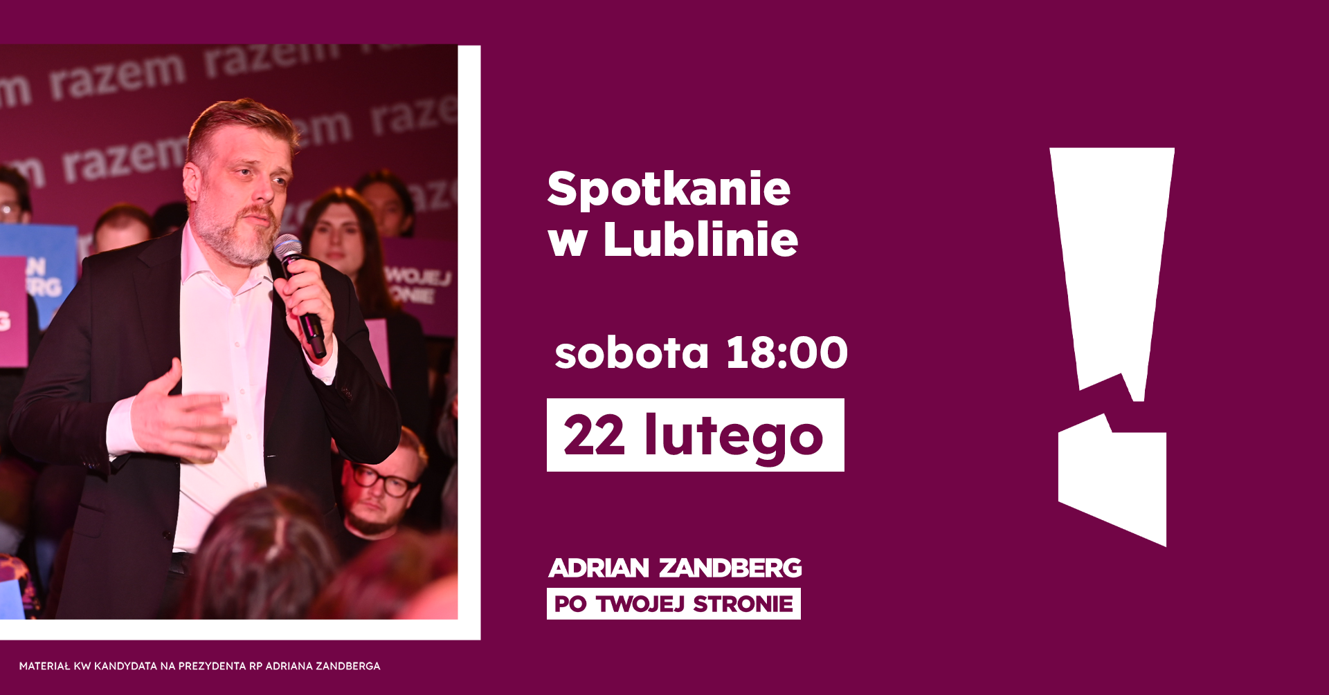 Adrian Zandberg w LublinieHotel Victoria Lublin, Sala Kongresowa, 20-016 Lublin, ul. Narutowicza 58/6022.02.2025, 18:00