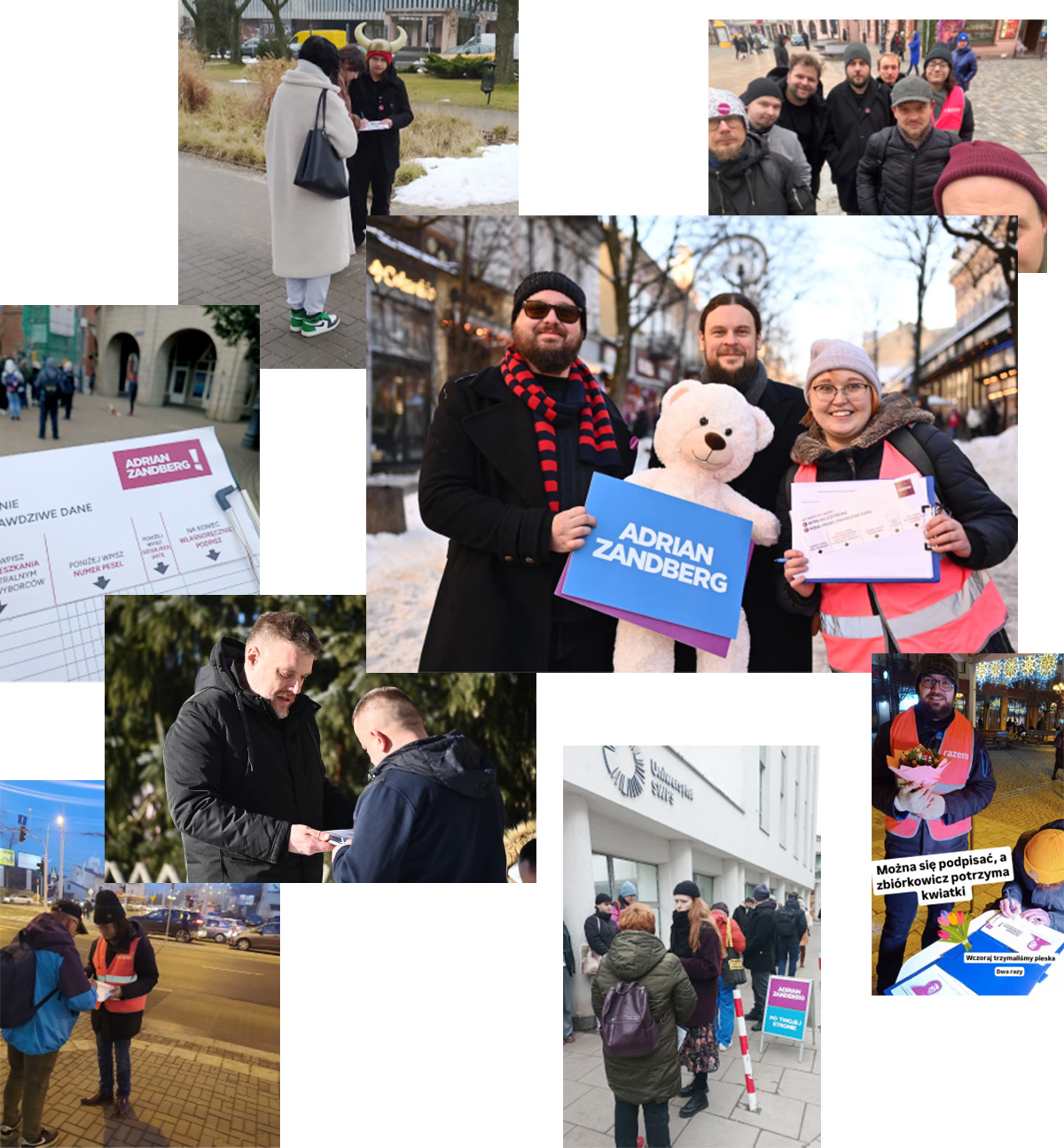 W kampanii wyborczej Adriana Zandberga oraz w partii Razem działa ponad 3 tysiące oddanych osób, które codziennie zbierały podpisy pod listami poparcia kandydata. Udało nam się osiągnąć znaczący sukces dzięki ich niezłomnej determinacji, pasji i zaangażowaniu. Teraz, dzięki tej energii, ulice wypełniają się ludźmi, którzy każdego dnia zachęcają innych do oddania głosu na Zandberga. Wspólnie tworzymy społeczność, która wierzy w lepszą przyszłość i nie boi się działać na rzecz zmian.